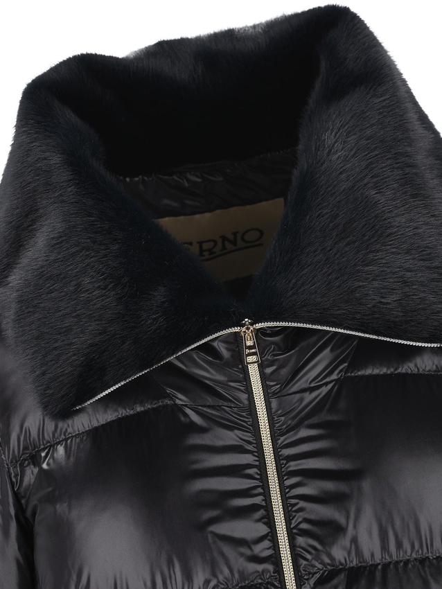 Piumino da donna, lunghezza 3/4, collo in ecopellicia colore nero