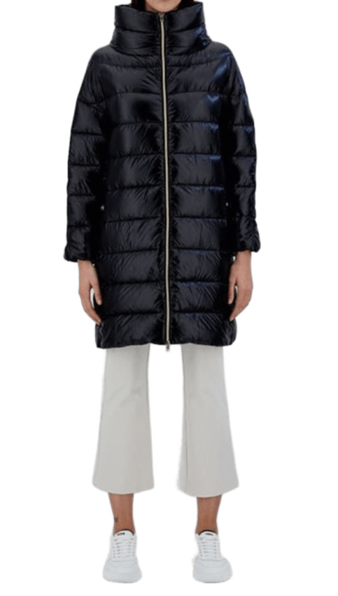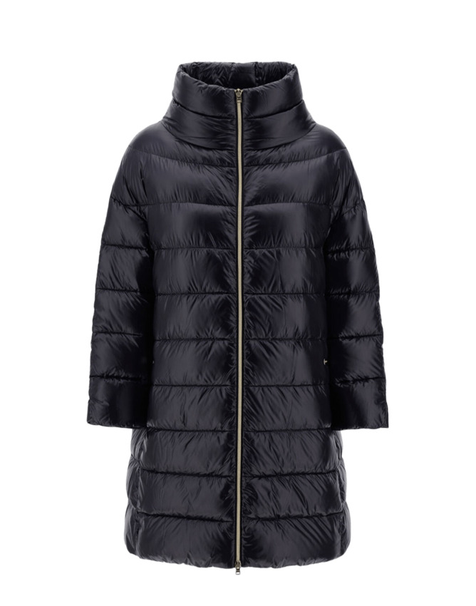 Piumino donna lunghezza 7/8 collo a cratere colore nero
