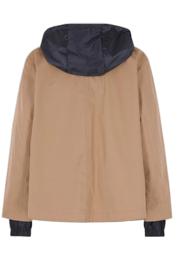 Giacca double-face realizzata in gabardina di cotone tinta e rifinita con trattamento antigoccia.