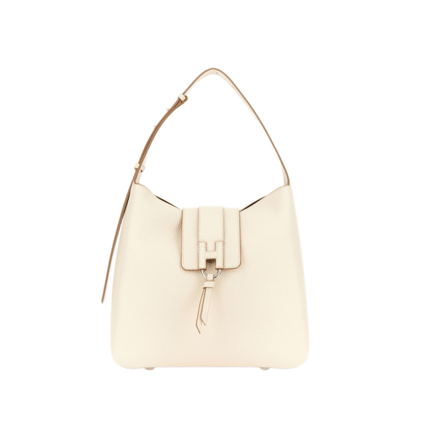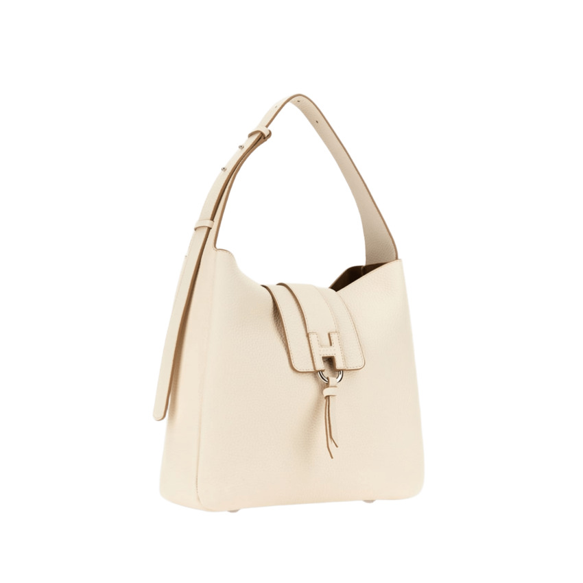 Borsa hobo elegante e contemporanea, perfetta per completare un look urban chic da tutti i giorni. Realizzata in pregiata pelle martellata, si distingue per la chiusura con pattina arricchita da una raffinata H a rilievo con logo Hogan impresso e nappina decorativa, dettaglio iconico e distintivo. Il manico a spalla regolabile assicura comfort e versatilità duso, mentre la chiusura con bottone magnetico garantisce praticità. Linterno, dotato di tasca, consente di organizzare al meglio gli effetti personali. Completano il modello i piedini in metallo, pensati per proteggere la base e aggiungere un tocco di eleganza. Una borsa versatile e sofisticata, ideale per accompagnare con stile ogni momento della giornata.