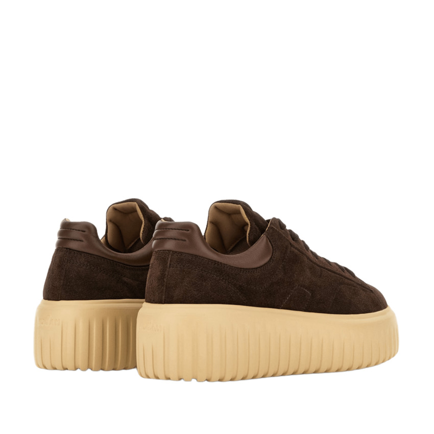 Modello dalle linee sportive e versatili, le sneakers H-Stripes sono caratterizzate da una suola extralight con righe verticali. La tomaia, dal design compatto e bilanciato, si distingue per un'H che si estende su tutto il lato. Il bordo superiore, con cuciture sul talloncino, ha una morbida imbottitura. Questa versione è realizzata in pelle scamosciata, con una soletta in memory foam che assicura ammortizzazione.