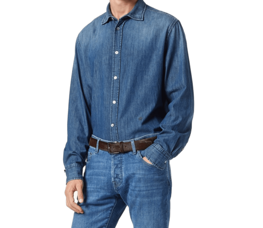 Camicia da uomo in denim leggero di puro cotone, colore blu medio