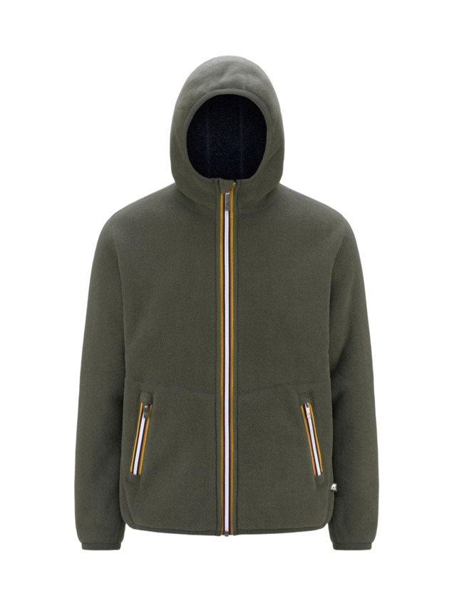La felpa da uomo Jack si caratterizza per il design reversibile che combina colori e tessuti diversi: un lato è realizzato in polar liscio e l'altro effetto sherpa dalla texture più ricca e soffice al tatto. Il risultato è un grado di calore medio, adatto alle mezze stagioni.