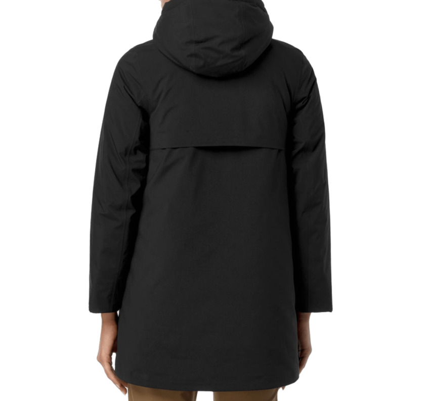 Giaccone da donna con cappuccio lunghezza 3/4 tessuto tecnico, colore nero