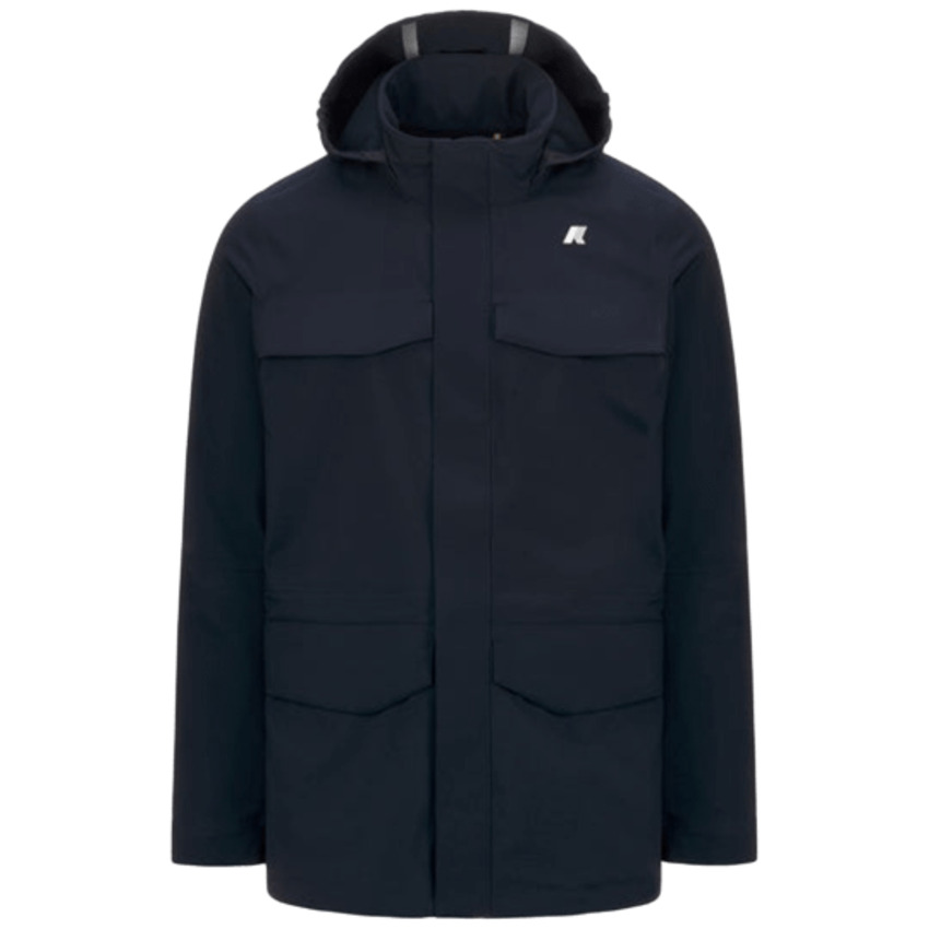 Giaccone da uomo in tessuto tecnico con cappuccio e tasche applicate, colore blue/blue