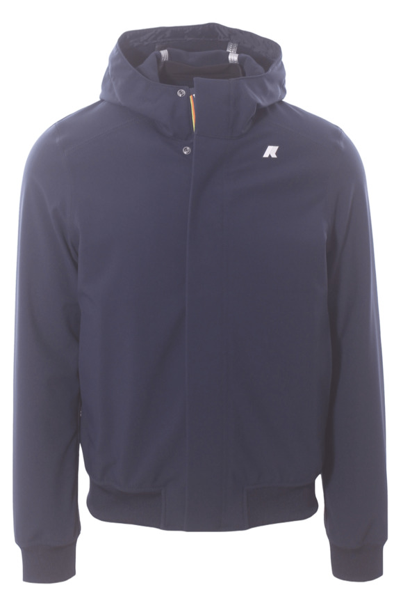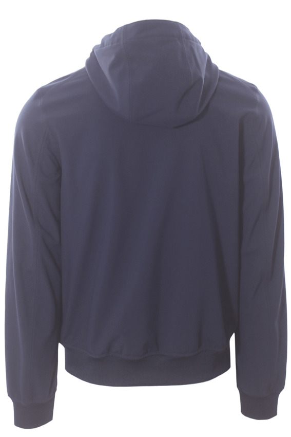 Giubbotto da uomo con cappuccio in tessuto tecnico impermeabile colore blu