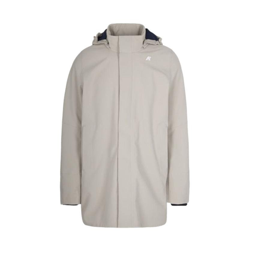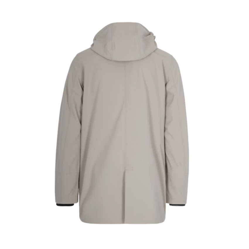 Parka da uomo con cappuccio staccabile, lunghezza 3/4 in tessuto tecnico, impermeabile, colore beige