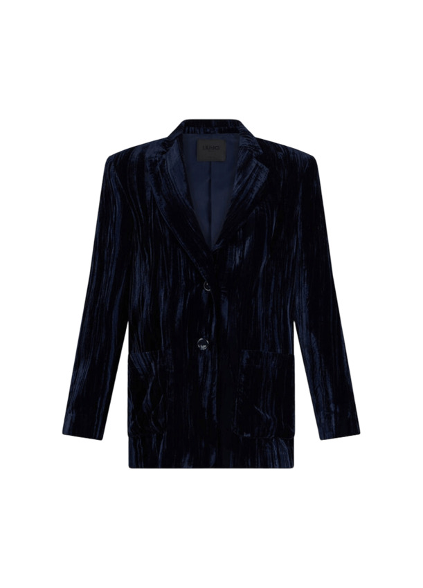 Blazer in velluto con revers classico, tasche sui lati e chiusura monopetto con bottoni