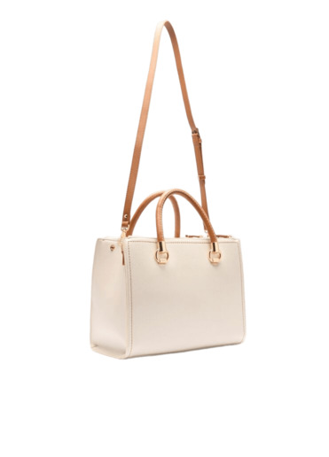 Borsa donna a mano/tracolla ecopelle crema e marrone
