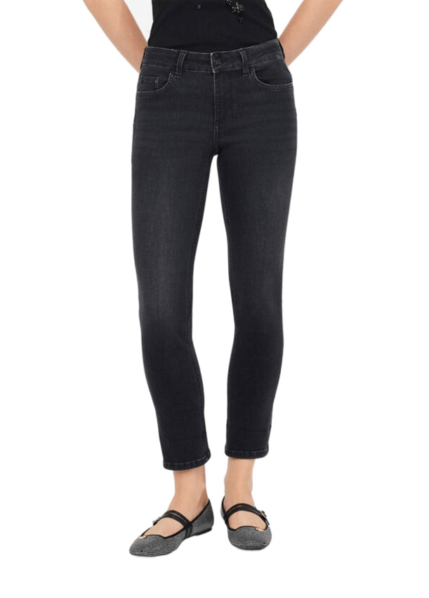 Jeans in denim stretch cinque tasche con cuciture bottom up che ridefiniscono le forme con eleganza, donando armonia e sostegno senza rinunciare al comfort.