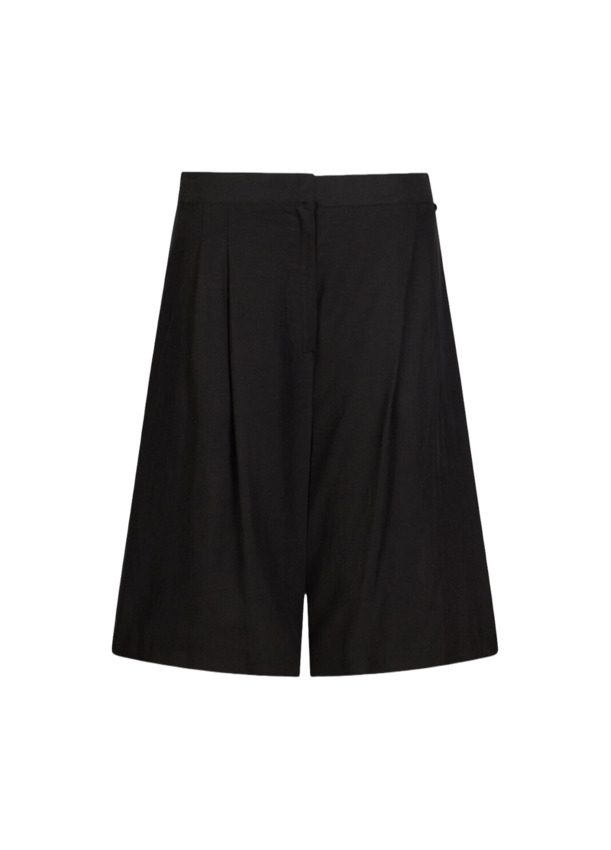 Bermuda in lino e lyocell con pence sul davanti e comode tasche laterali. Lunghezza al ginocchio.