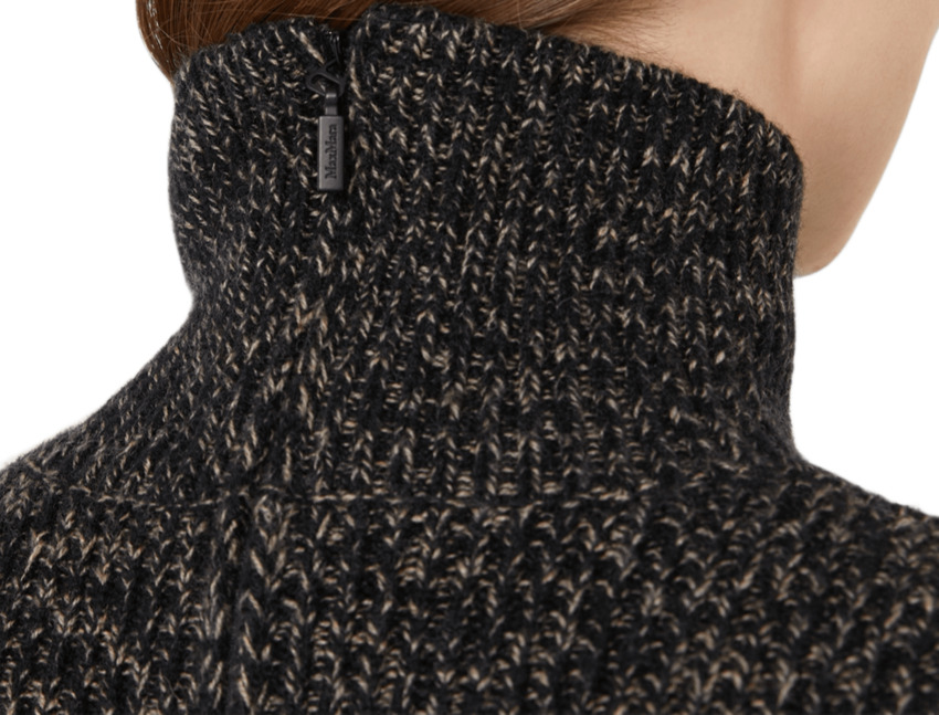 Maglia dolcevita in filato mouliné stretch di lana e cachemire caratterizzata da una lavorazione a coste che evidenzia la silhouette.