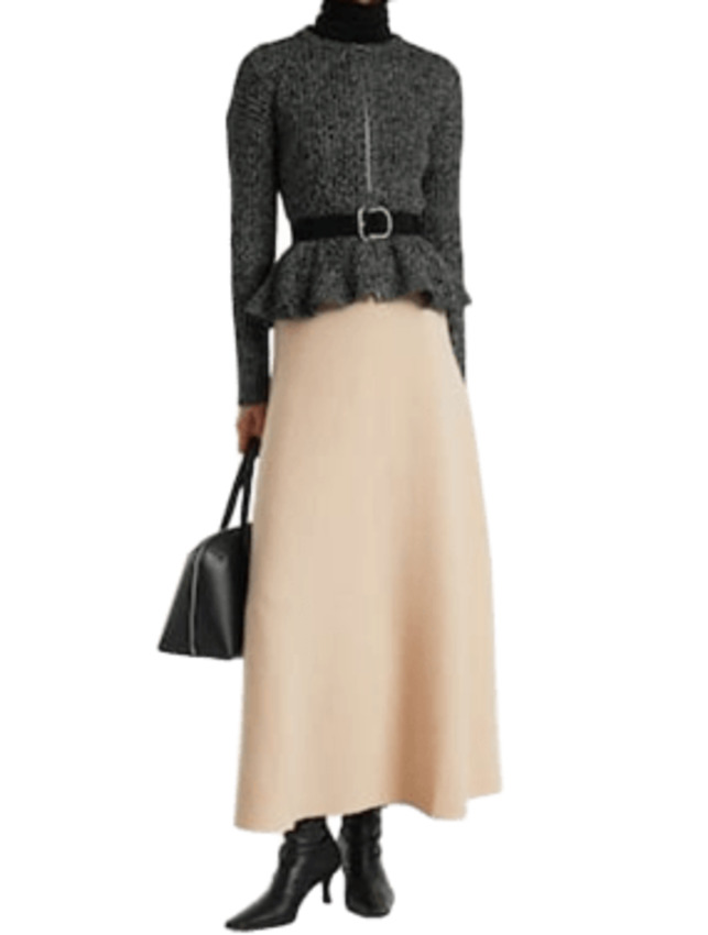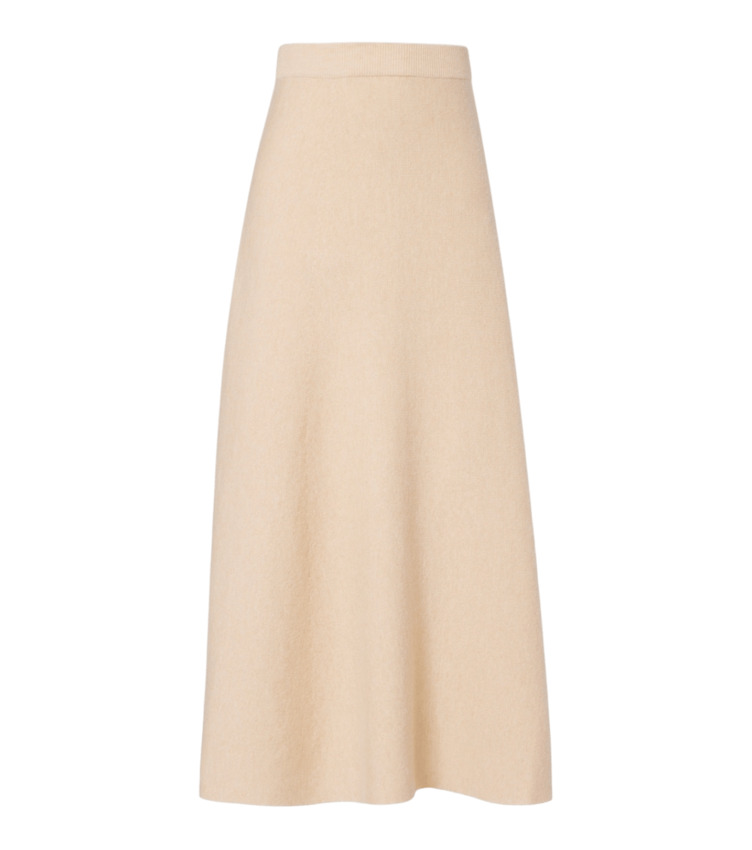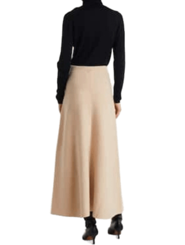 Gonna lunga in filato di lana e cachemire caratterizzata da una lavorazione a punto stoffa che dona consistenza alla texture.