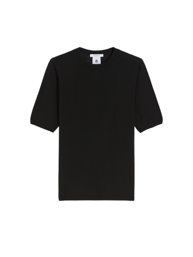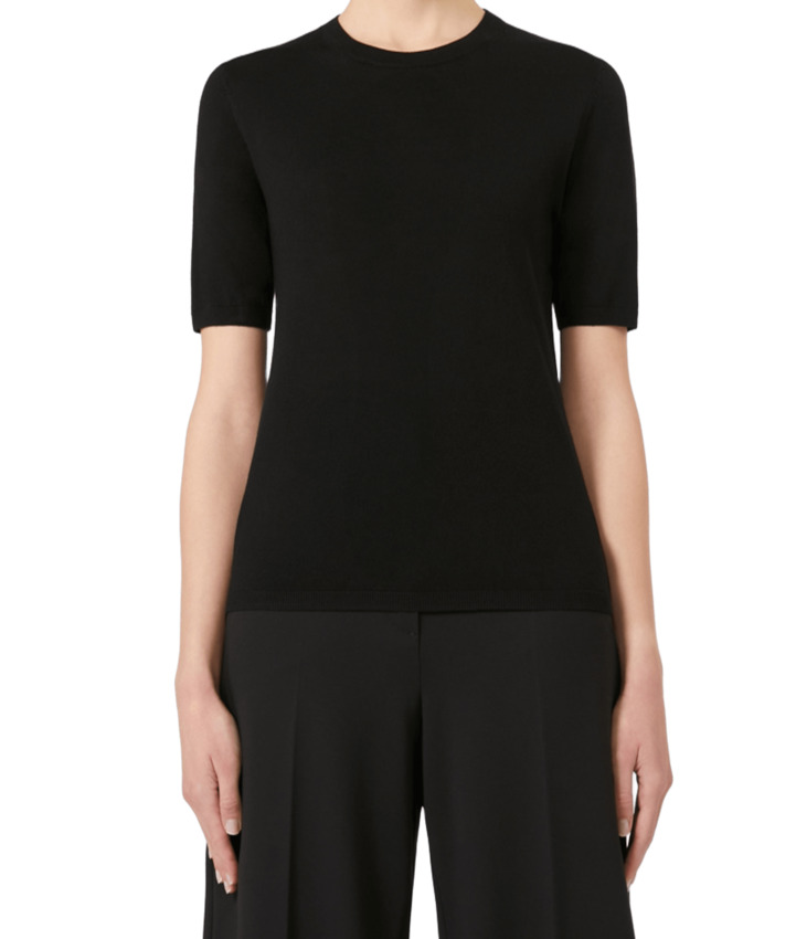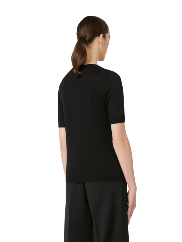 Maglia da donna in pura lana , girocollo, mezza manica, colore nero