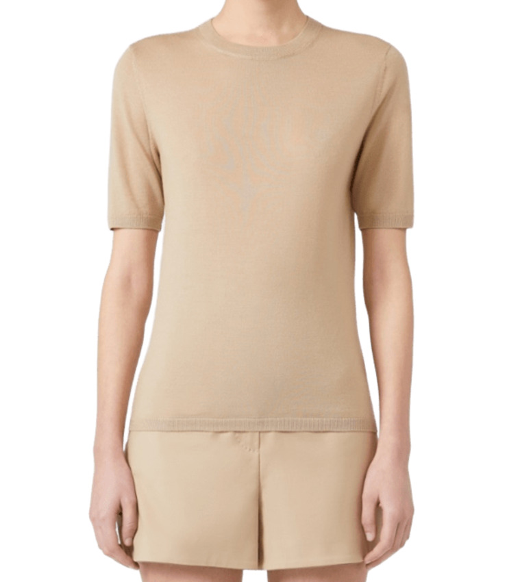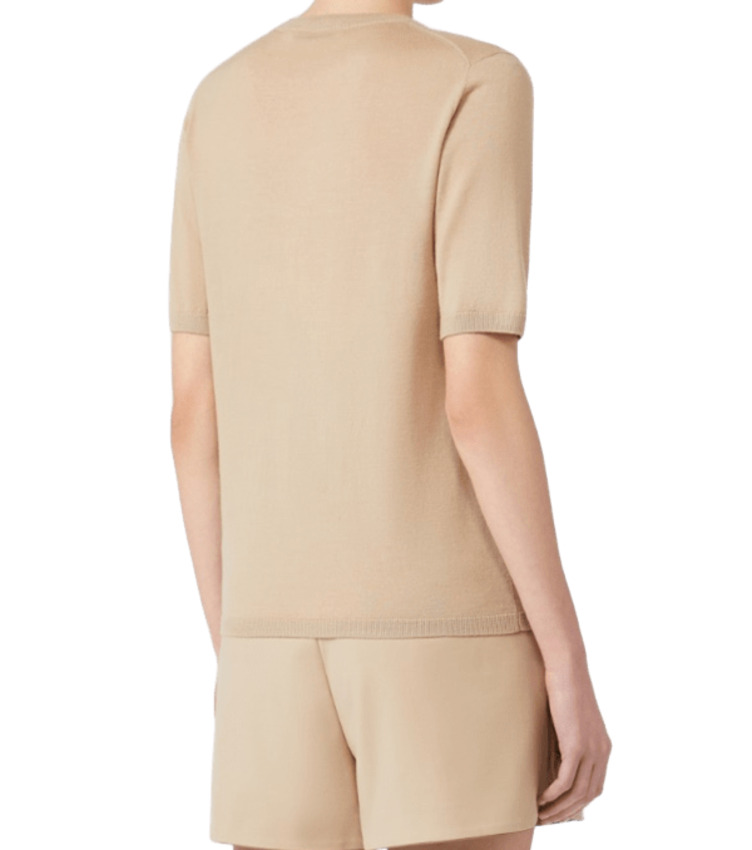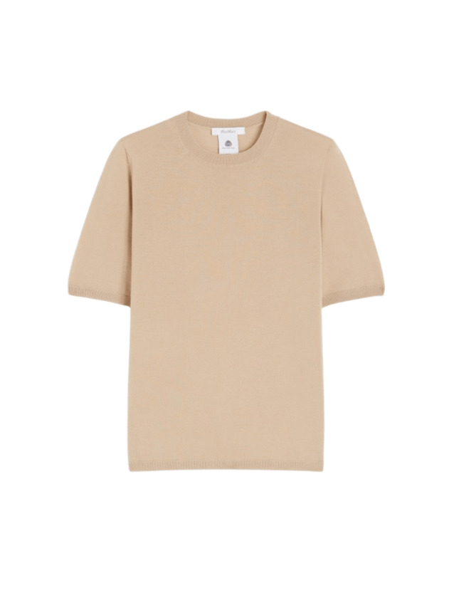 Maglia da donna in pura lana , girocollo, mezza manica, colore sabbia