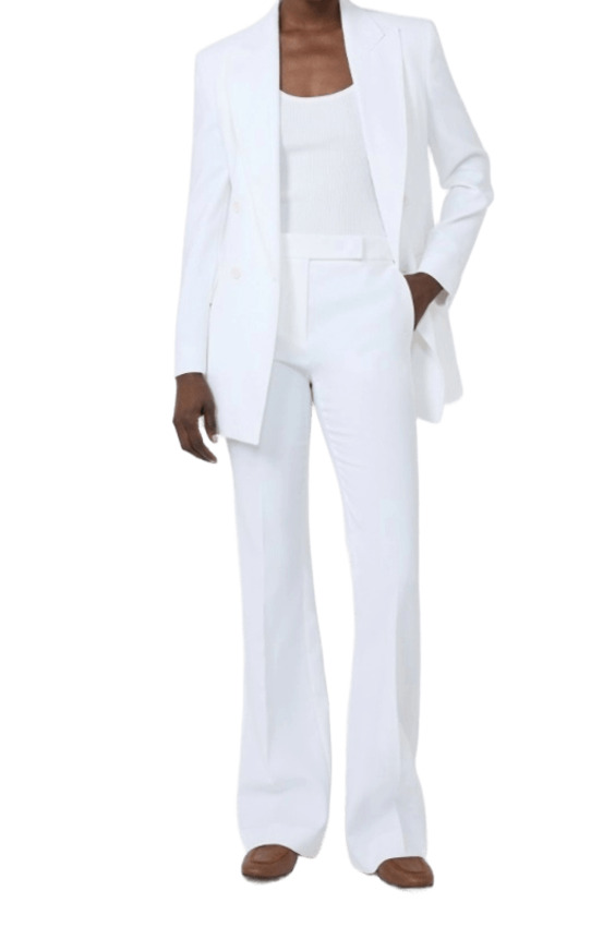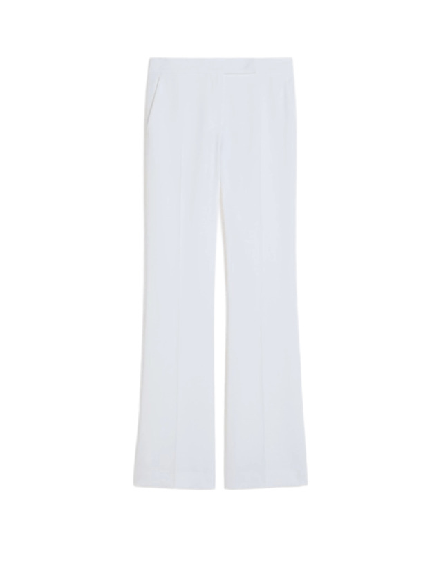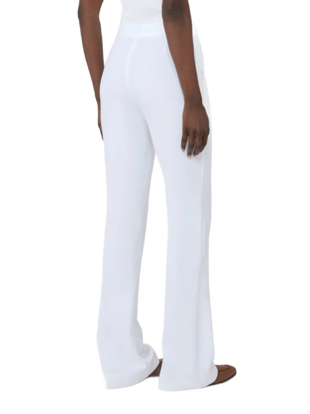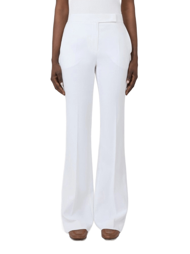 Pantalone lungo realizzato in canvas di puro cotone crêpe, si distingue per la sua texture raffinata e la struttura confortevole. La linea aderente, leggermente svasata al fondo, dona equilibrio e movimento al capo, mentre il listino alto in vita con chiusura a zip coperta da patta e gancetto assicura una vestibilità precisa e definita. Le tasche alla francese sui fianchi aggiungono funzionalità mantenendo unestetica pulita. Completano il design la piega stirata lungo la gamba e le pinces cucite in vita sul retro, per un fit impeccabile. Un pantalone versatile e sofisticato, ideale per look formali o outfit dal gusto contemporaneo.
