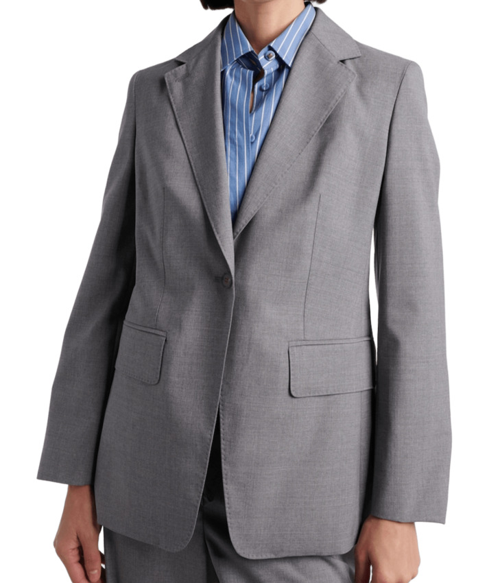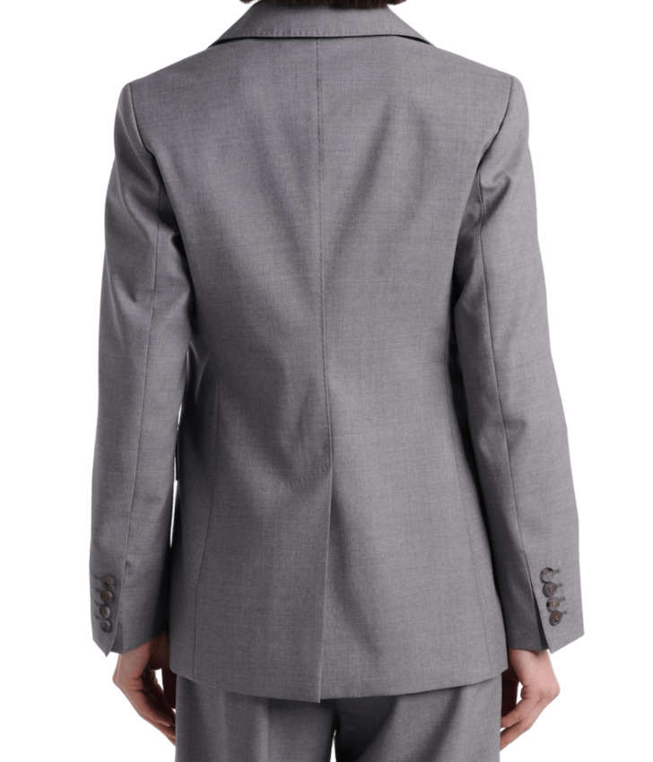 Blazer monopetto dalla silhouette aderente, progettato per valorizzare la figura con uneleganza essenziale e contemporanea. Realizzato in tela di pura lana natural stretch, assicura comfort, flessibilità e una vestibilità impeccabile, arricchita dal puntino sartoriale che ne esalta la qualità costruttiva. Il design pulito è definito dal collo a rever e dalle maniche a giro rifinite con bottoni sul fondo, mentre la chiusura frontale con bottone singolo dona al capo unallure sofisticata e moderna. Le tasche a doppio filetto con patta frontale aggiungono un dettaglio classico e funzionale. Lo spacco centrale sul retro garantisce libertà di movimento e una linea armoniosa. Completamente foderato in tessuto Monogram stretch in tono.