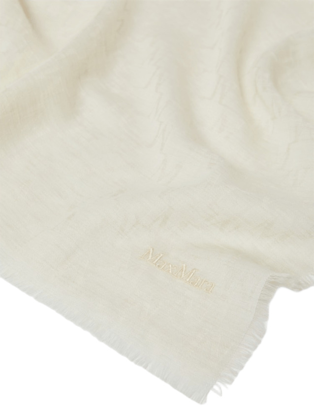 Stola rettangolare in pura lana con logo all-over, colore bianco avorio