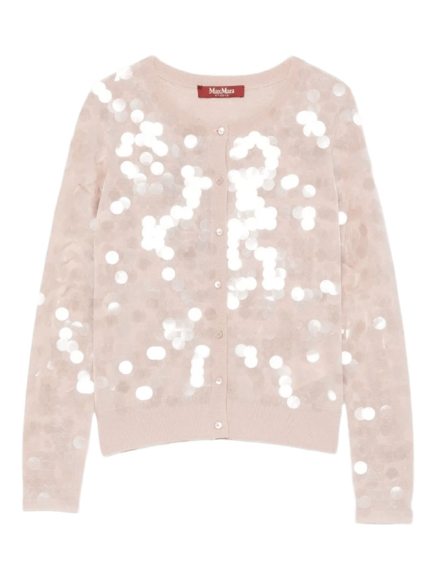 Cardigan da donna in pura lana con paillettes, colore rosa