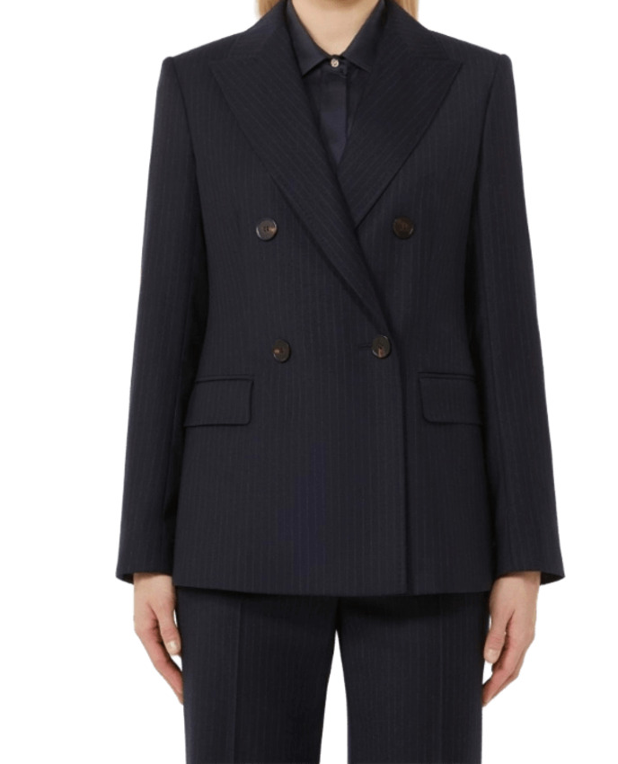 Blazer in flanella di lana stretch foderato, doppiopetto dalla costruzione sartoriale, con linea semi aderente e proporzioni bilanciate. Dettagli tecnici