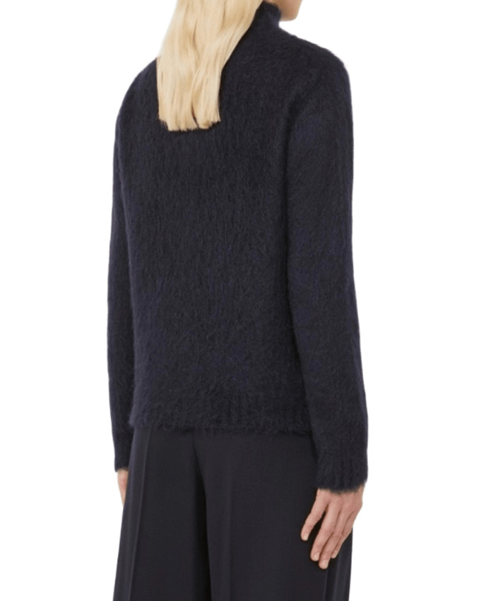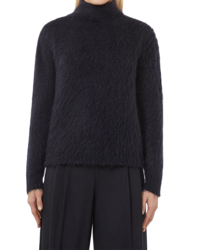 Maglia dolcevita in filato cardato di misto mohair caratterizzata da una lavorazione senza cuciture sui fianchi, per un comfort ottimale e una vestibilità armoniosa. Presenta maniche lunghe con spalla scesa e polsi e bordo a costine.