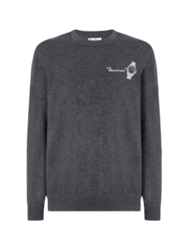 Maglione in misto lana rasata e cashmere a girocollo, maniche lunghe con fondo e polsi a coste e ricamo polso St. Barth.
