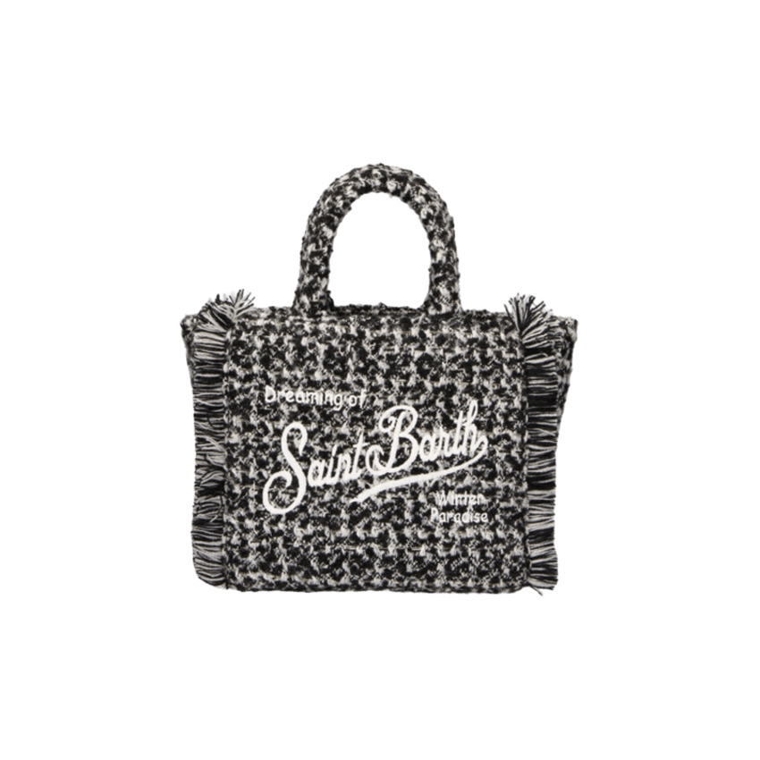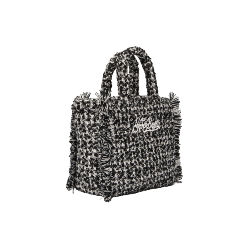 Borsa da donna a mano/tracolla in tweed, colore bianco/nero.