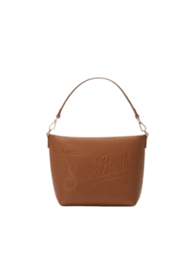 Borsa da donna in pelle martellata, tracolla removibile, colore cuoio.