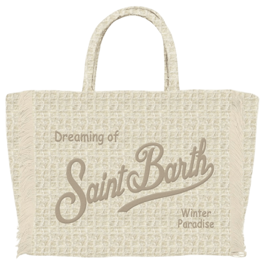 Borsa da donna in tweed di misto lana, a mano/tracolla, logo, colore bianco lana.