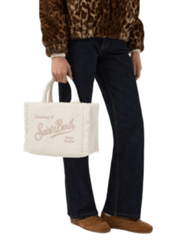 Borsa a mano in misto lana con tracolla regolabile e removibile, tasca interna e logo ricamato.