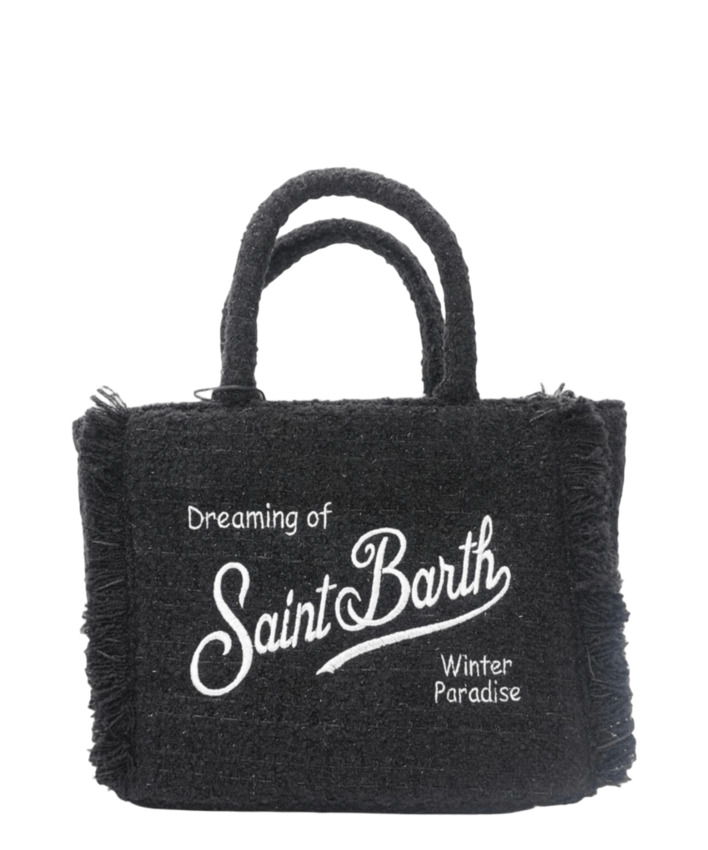 Borsa a mano in misto lana con tracolla regolabile e removibile, tasca interna e logo ricamato.