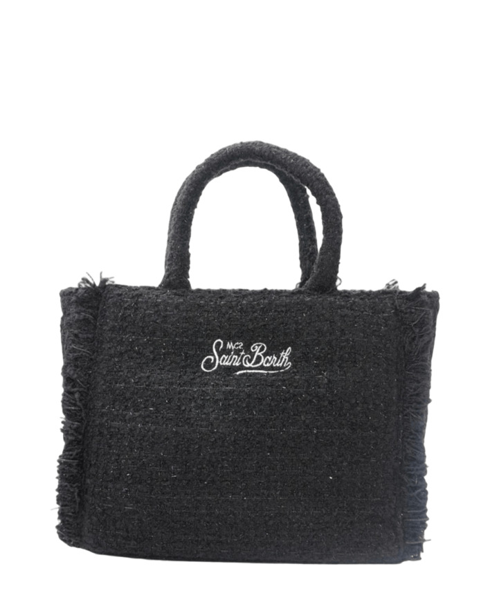 Borsa da donna in tweed di misto lana, a mano/tracolla, logo, colore nero.