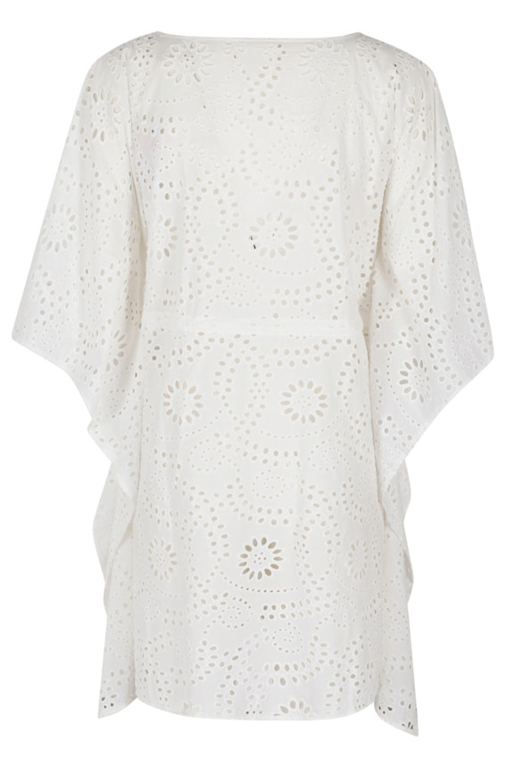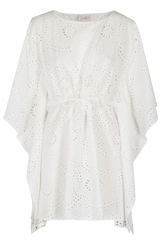 caftano donna manica a kimono coulisse sangallo cotone bianco
