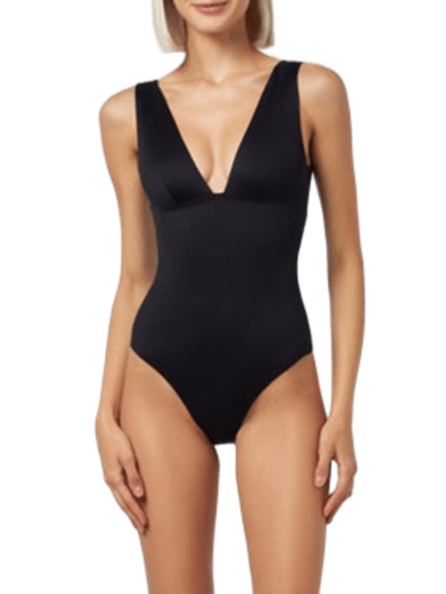 Calliope presenta lo scollo a V ed una cucitura sotto il seno per un supporto migliorato e una silhouette elegante. Le spalline larghe e la schiena scollata aggiungono un tocco di sofisticatezza, femminilità e comfort, mentre il tessuto morbido e le cuciture termosaldate garantiscono un effetto modellante.
