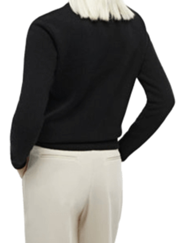 Maglia in misto cashmere e lana rasata girocollo, maniche lunghe. Fondo, collo e polsi a coste