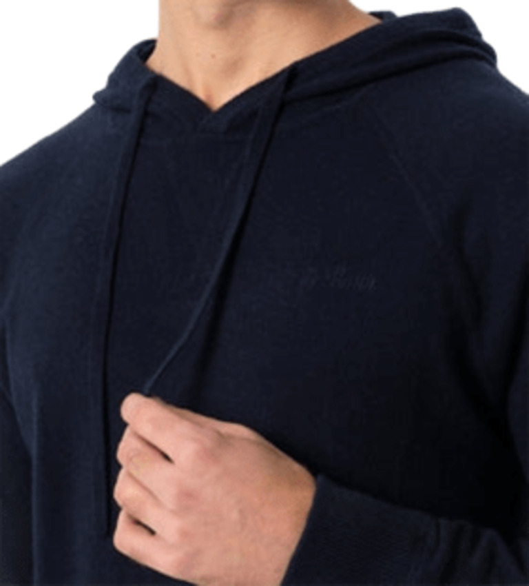 Maglione da uomo con cappuccio e tasca a canguro in maglia di lana, colore blu notte