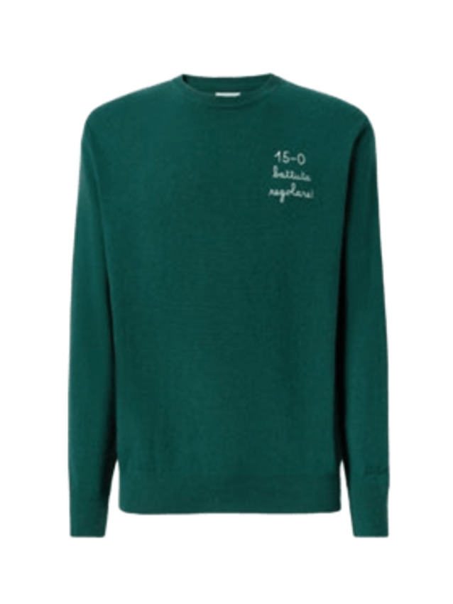Maglione da uomo in misto lana e cashmere, girocollo, ricamo 15-0 BATTUTA REGOLARE, colore verde.