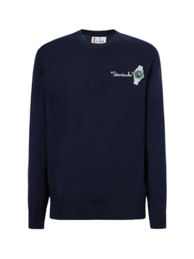 Maglione da uomo in misto lana e cashmere, girocollo, ricamo STARDUCKS, colore blu notte