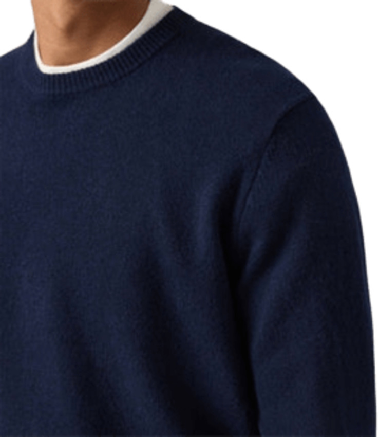 Maglione da uomo in pura lana, girocollo, color blu notte
