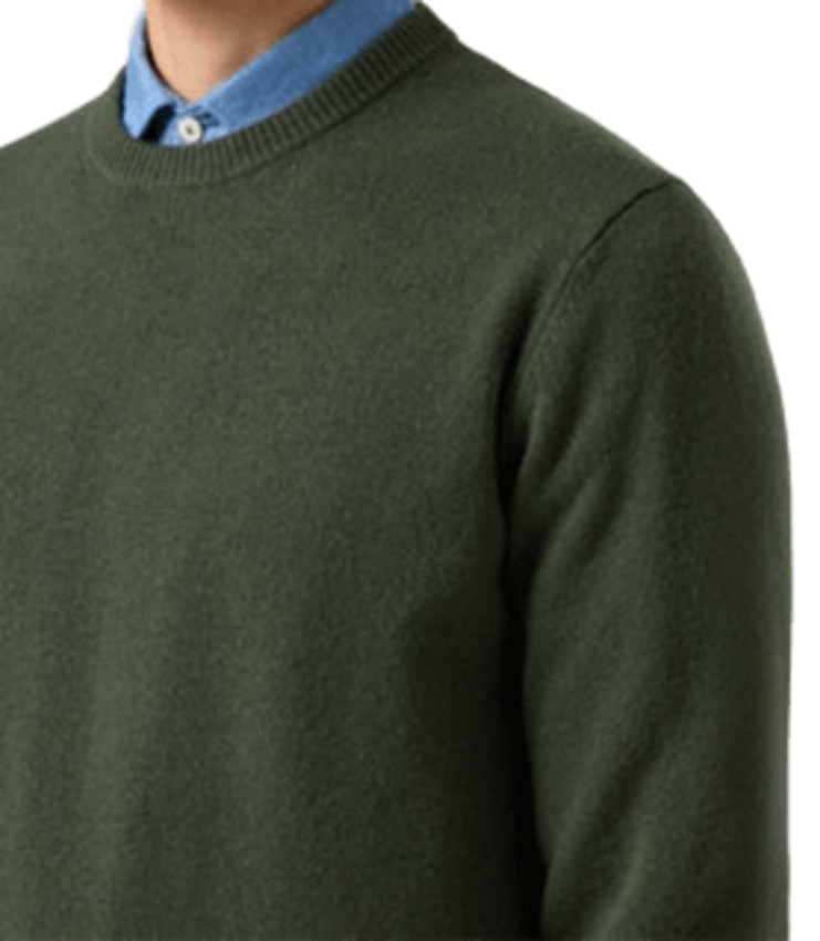 Maglione da uomo in pura lana, girocollo, color verde militare