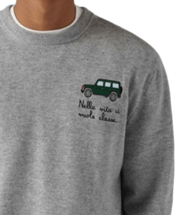 Maglione in misto lana rasata e cashmere a girocollo, maniche lunghe con fondo e polsi a coste e ricamo polso St. Barth.