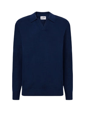 Polo da uomo in pura lana, maniche lunghe, colore blu navy.