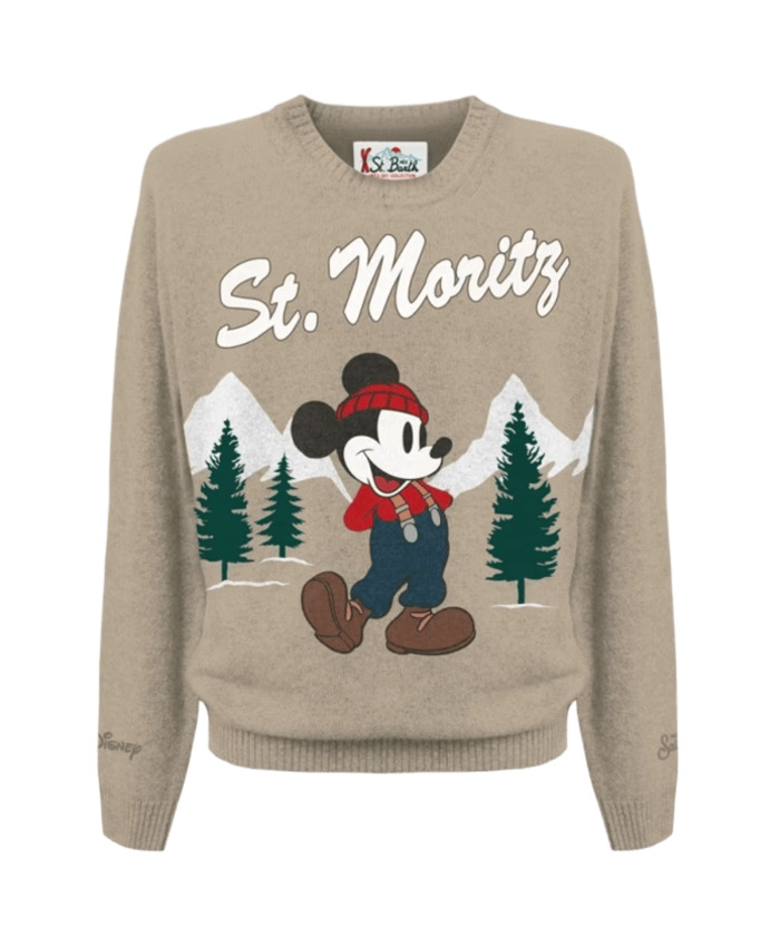 Maxi jacquard frontale ST.MORITZ MICKEY sullo sfondo nocciola.