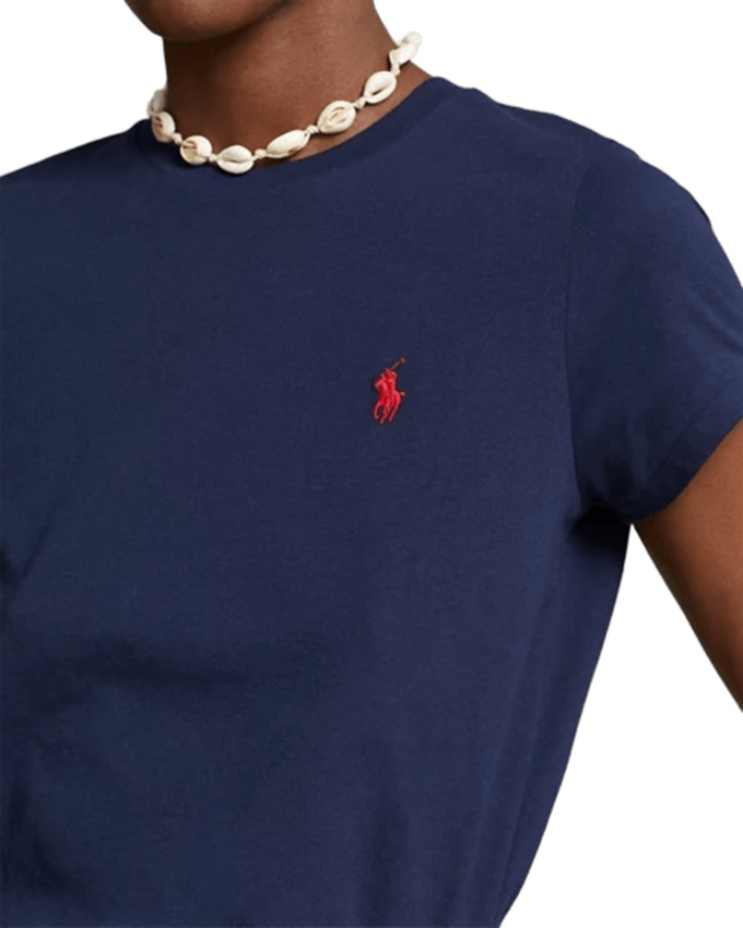 Questa maglietta a girocollo in leggero jersey di cotone tinto in capo è un intramontabile classico Polo. Il capo è rifinito con il pony ricamato sul torace, per un tocco esclusivo.