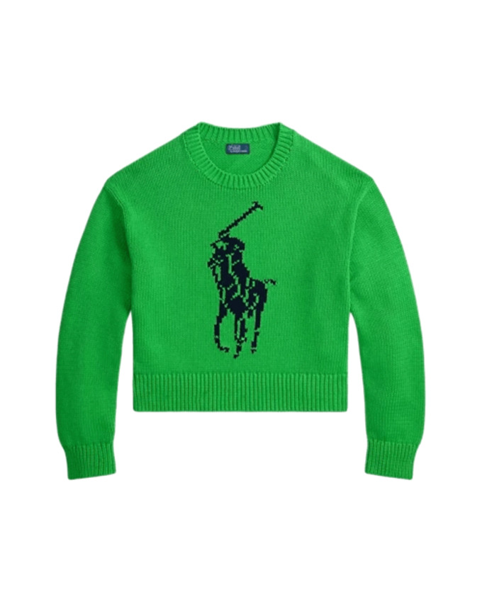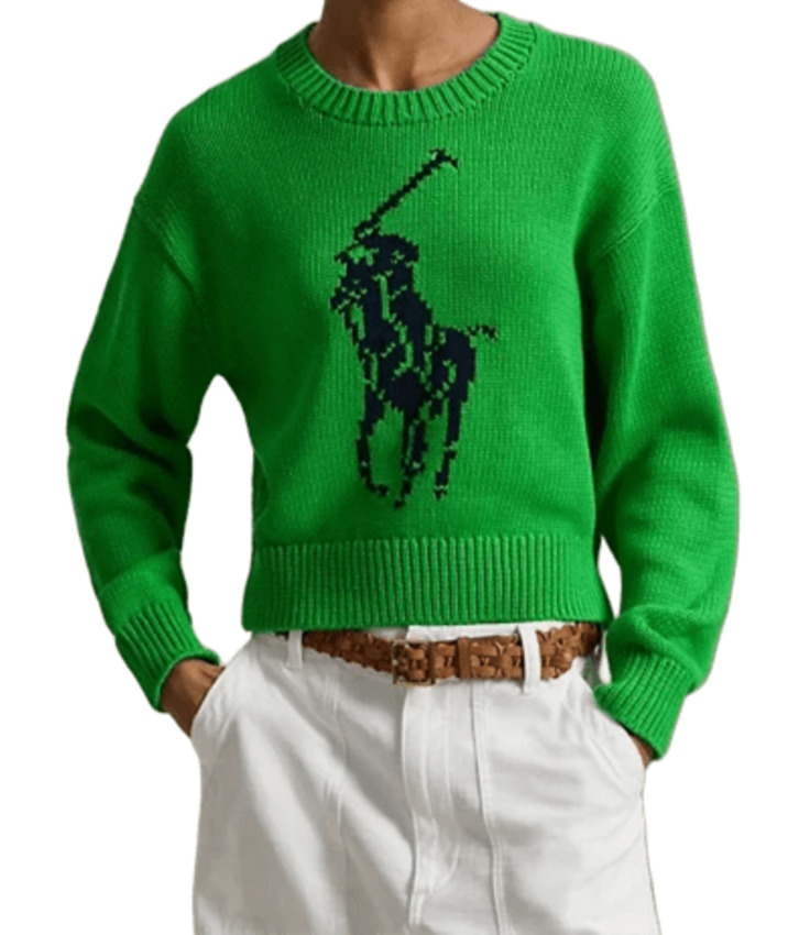 Realizzata in cotone e trattata per offrire morbidezza e resistenza, questa maglia a girocollo presenta l'iconico Big Pony di Ralph Lauren lavorato in maglia a intarsi al centro sul davanti.