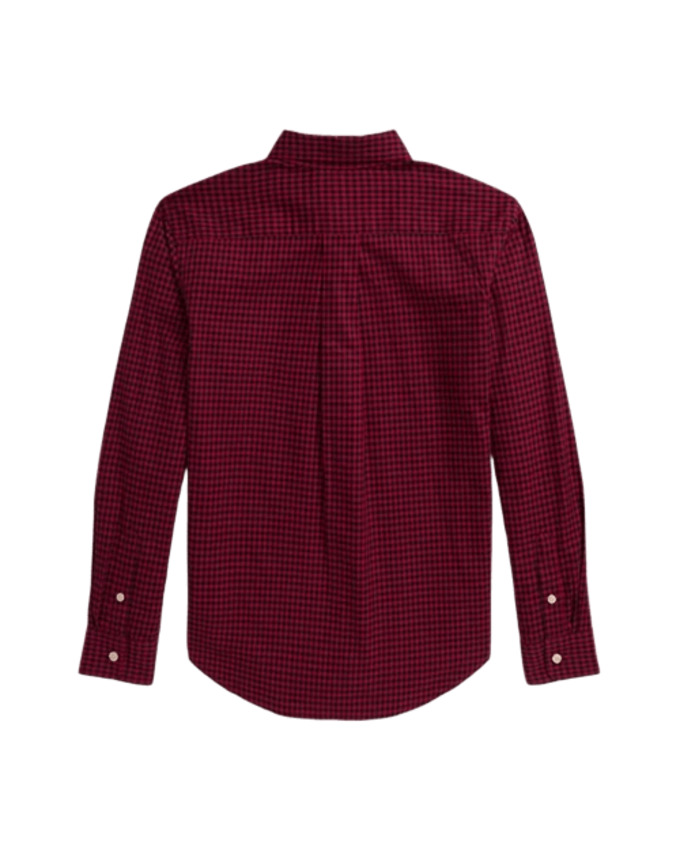 Camicia da bambino in puro cotone botton down, quadretti wine/black.