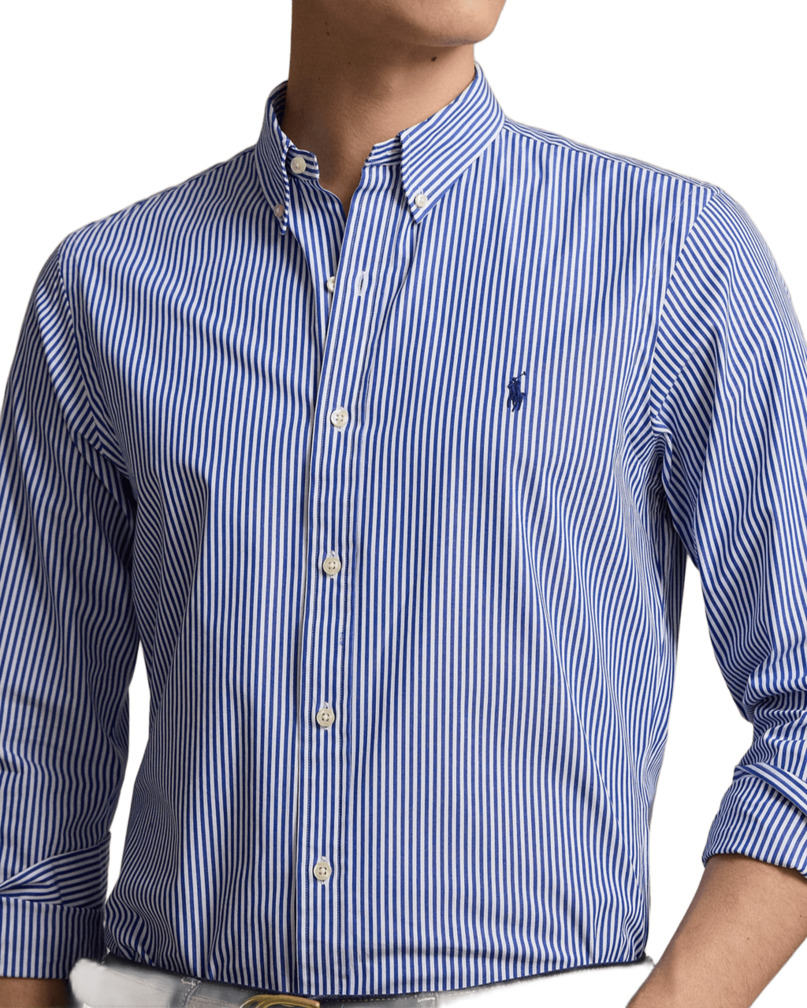 Camicia da uomo in popeline stretch a righe colore blu/bianco
