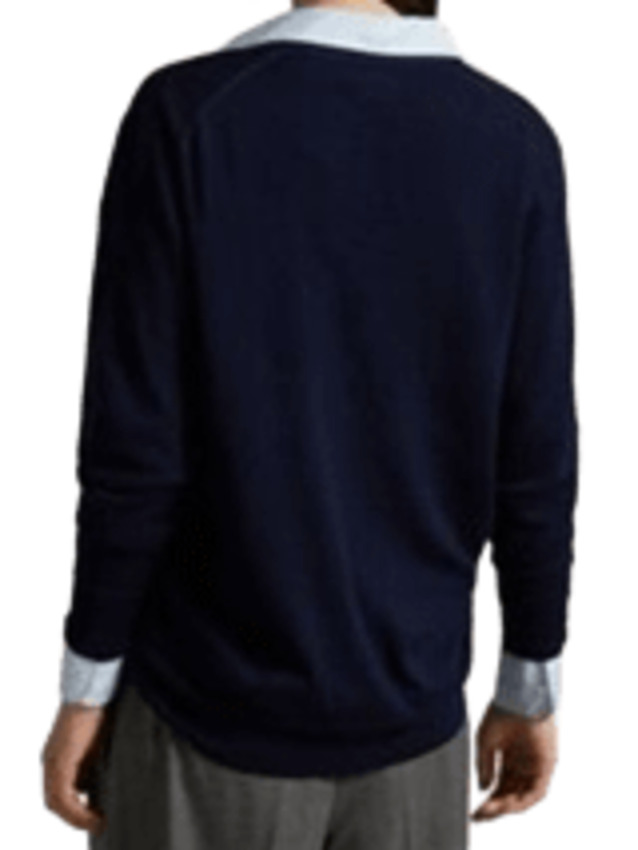 Realizzato con lana italiana di medio peso, questo classico modello con scollo a V è rifinito con esclusivo pony ricamato sulla tasca sinistra. Taglio dritto leggermente morbido.