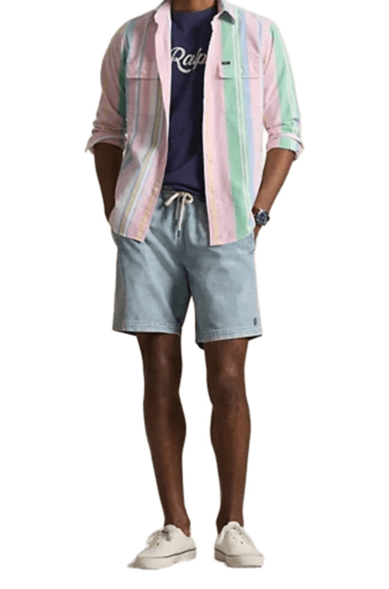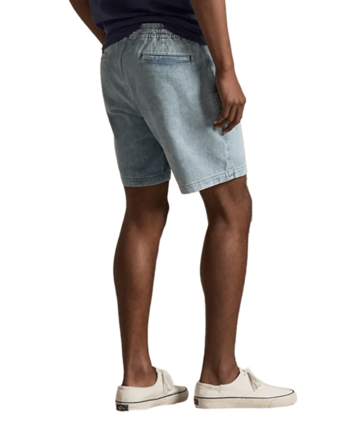 Questo bermuda è realizzato in denim di cotone non stretch, tinto con indaco e levigato a mano per ottenere un autentico aspetto vissuto. Presenta fascia in vita elasticizzata con coulisse, due tasche di sbieco davanti e due tasche a filetto sul retro.