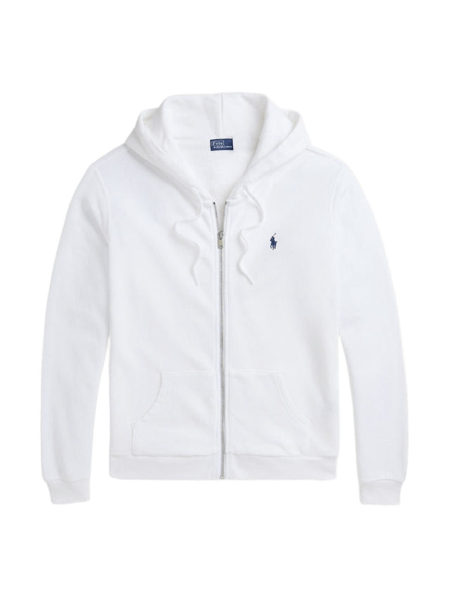 Cappuccio con coulisse, chiusura frontale con zip, logo a contrasto ricamato sul petto, tasche frontali applicate, orlo e polsi con finitura a costine